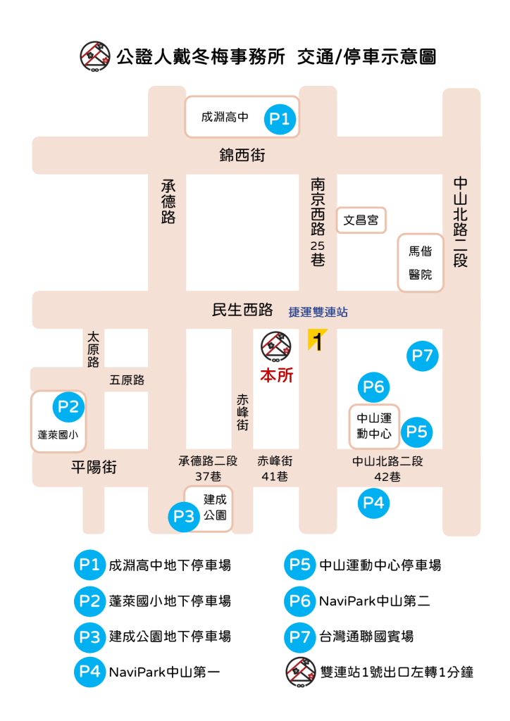 本所位於捷運雙連站 1 號出口左轉1分鐘